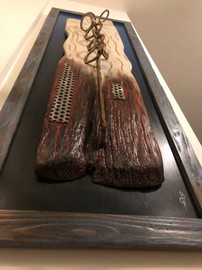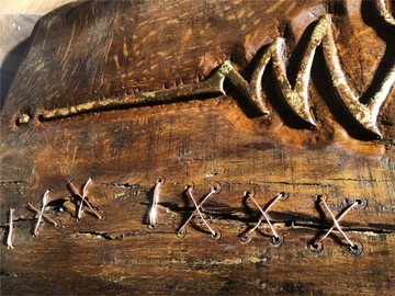 Qualche tempo fa una coppia di amici doveva ristrutturare casa e tra i vari resti di calcinacci e cose del genere, sono venute fuori delle assi di legno che fungevano da piattabanda sulle porte interne, conoscendomi mi hanno chiamato ed ho colto la palla al balzo, nelle foto vi mostro quello che, dopo un pò di lavoro e fantasia, è venuto fuori...